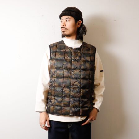 軽くて暖かく安心プライス!【UNISEX】TAION ベーシック クルーネックボタン インナーダウンベスト TAION-004