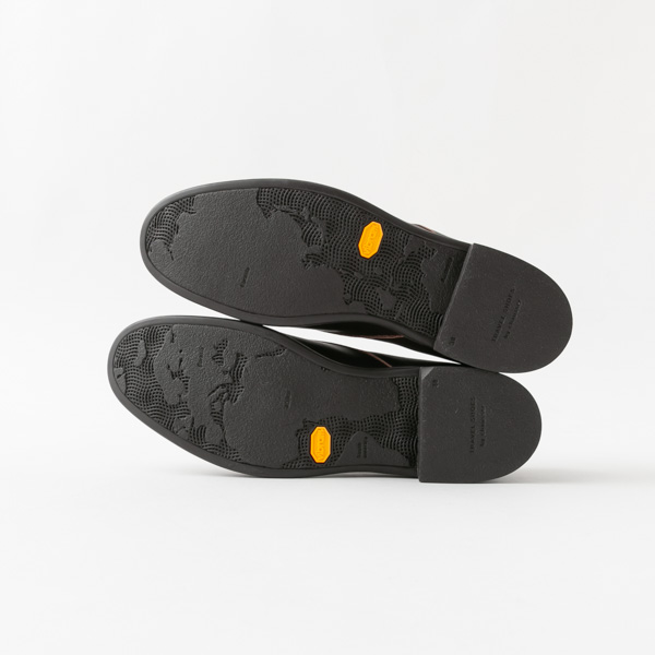 世界地図柄のオリジナルデザインソールは、イタリアのヴィブラム社に依頼した、寒冷地でも使えるICETREK(アイストレック)タイプの特注ソールです。滑りにくくなっています。