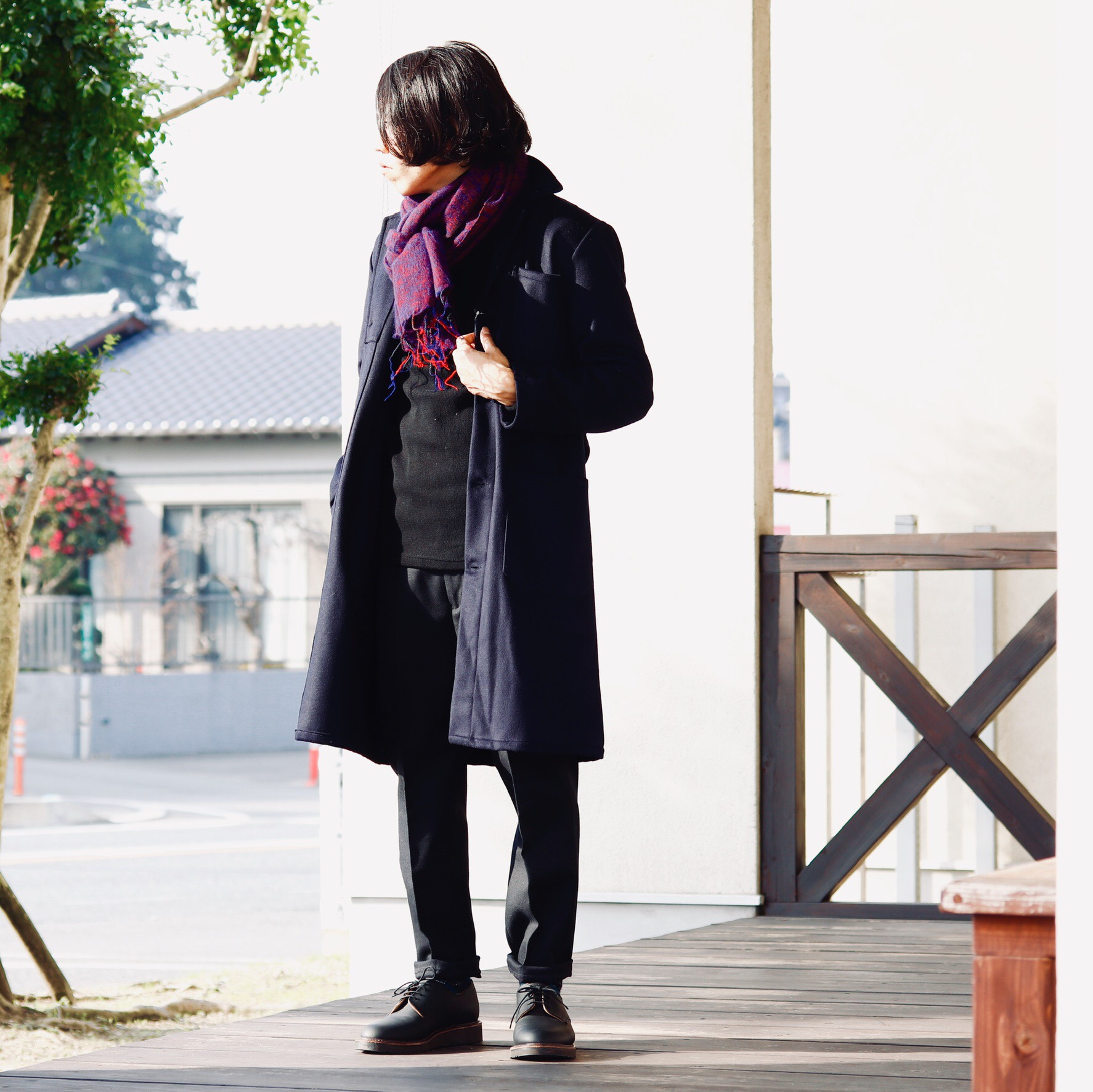 普段は細身のパンツに合わせる事が多いコートも