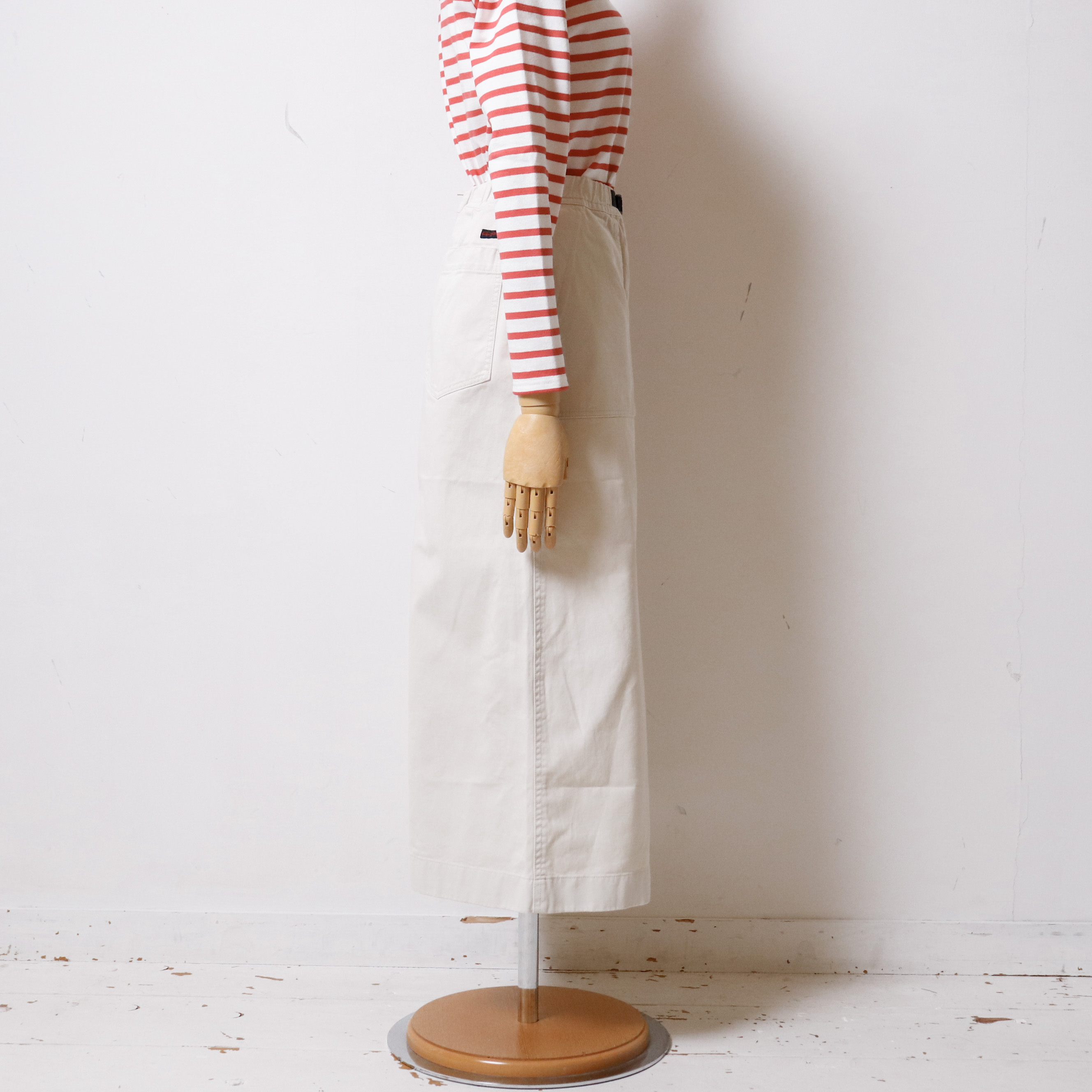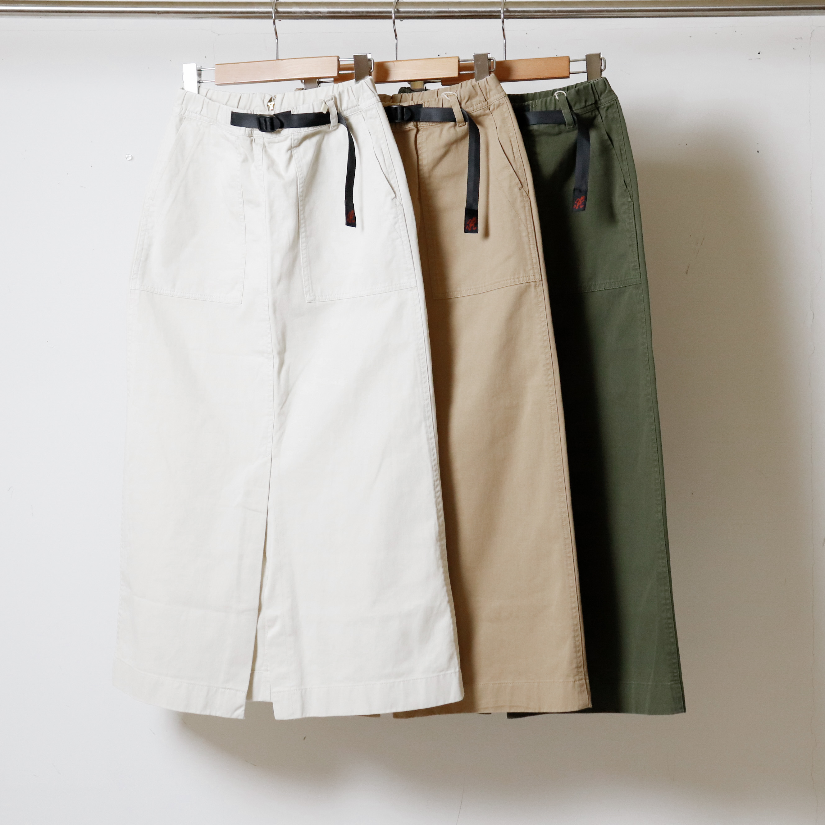 グラミチ定番のコットンツイルを使用し、大きめなスクエアポケットがついたスカート!