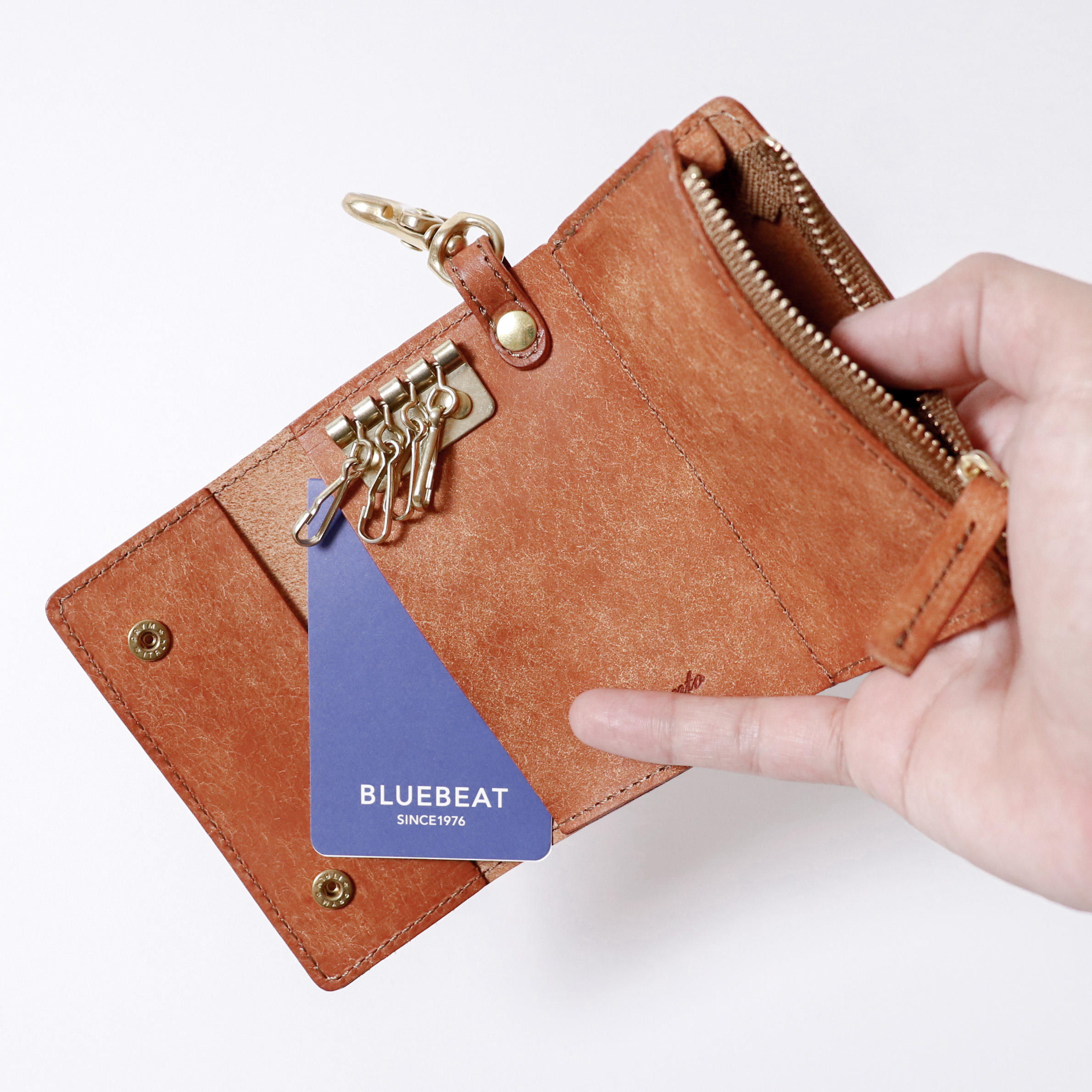 程よくコンパクトなサイズ感ながら利便性に富んだキーケースでございます。