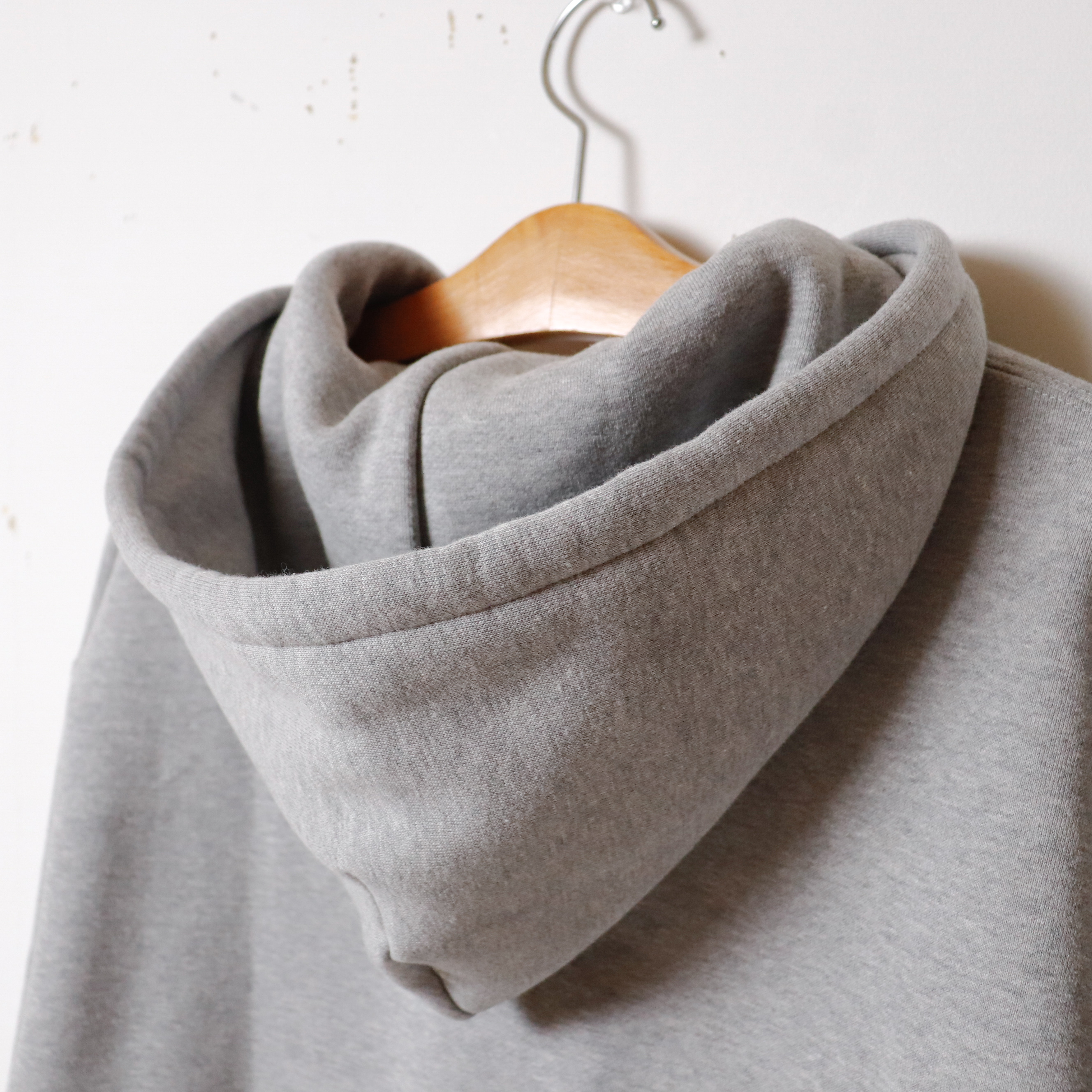 生地は希少な旧式編機「アズマ編み機」を使用した、ベビーウエイト裏毛の裏起毛素材です。