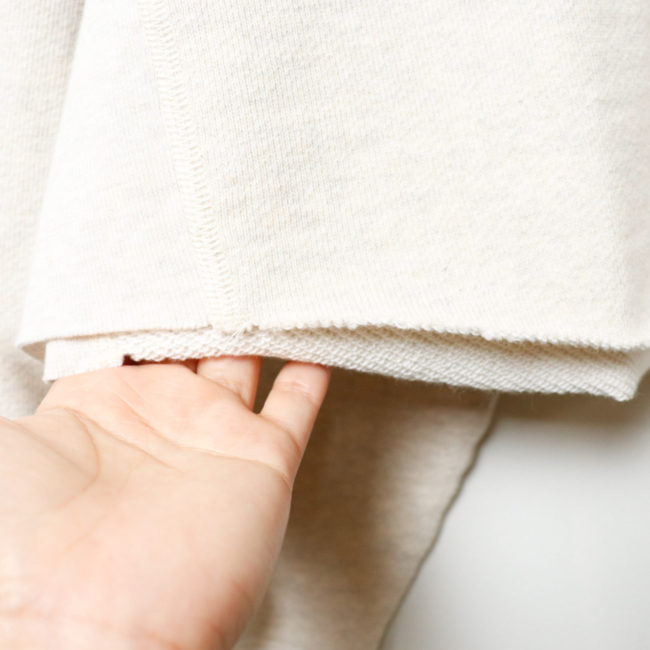 裾はあえてリブなしにすることで抜け感のある仕上がりに。