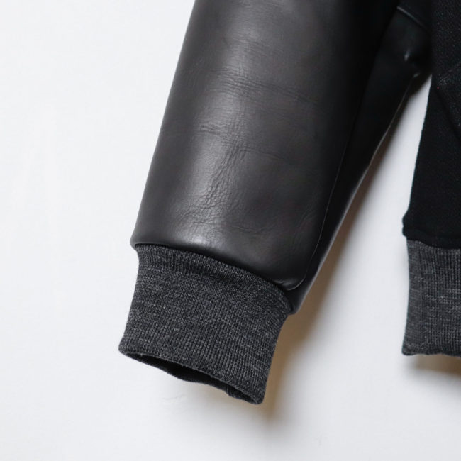 袖のレザーはウォッシャブル仕様で多少の雨は拭くことでメンテナンス可能。