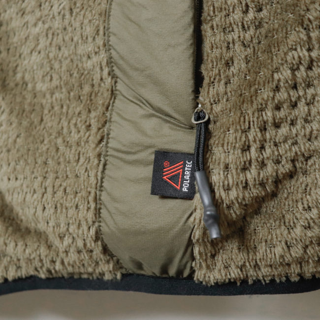内側のPOLARTEC® HIGH LOFTシリーズのグリッドフリースは、POLARTEC®のテクノロジーが詰め込まれた米国本社工場でしか作成できない最高品質のフリースで、嵩高で保温性に優れ非常にソフトでスムースな肌触りになっています。