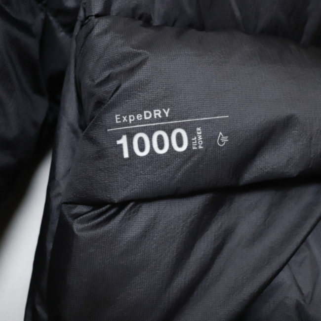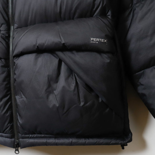 表地、裏地にはPERTEX Quantumの中でも最軽量のカテゴリに属する7d x 5dの生地を使用し、生地・ダウンともに軽さを追究しています(総重量約450g)。