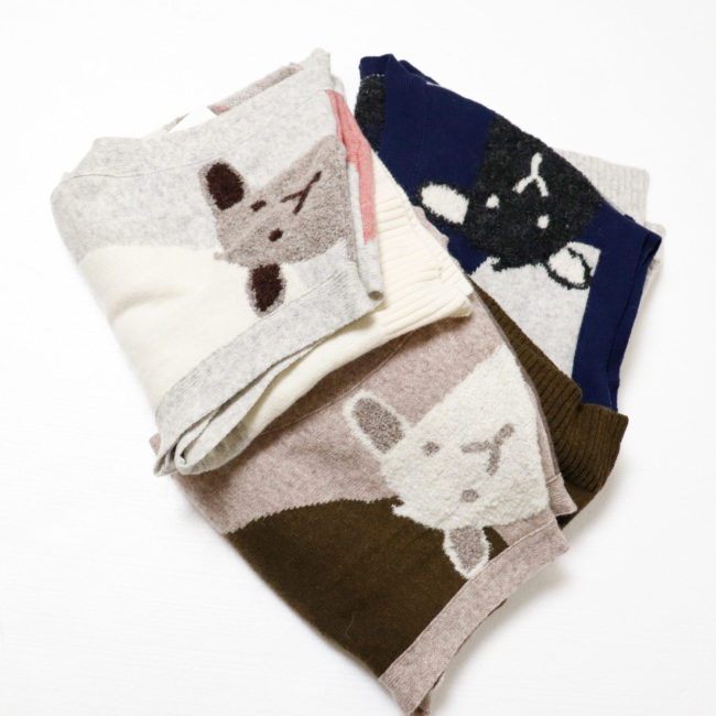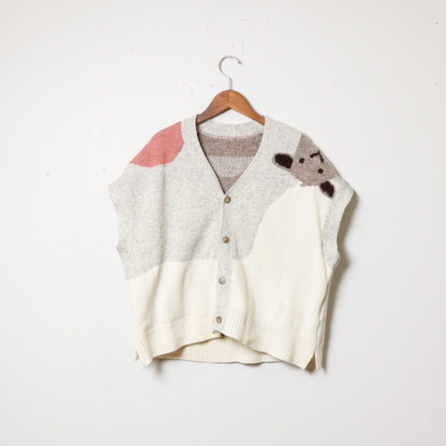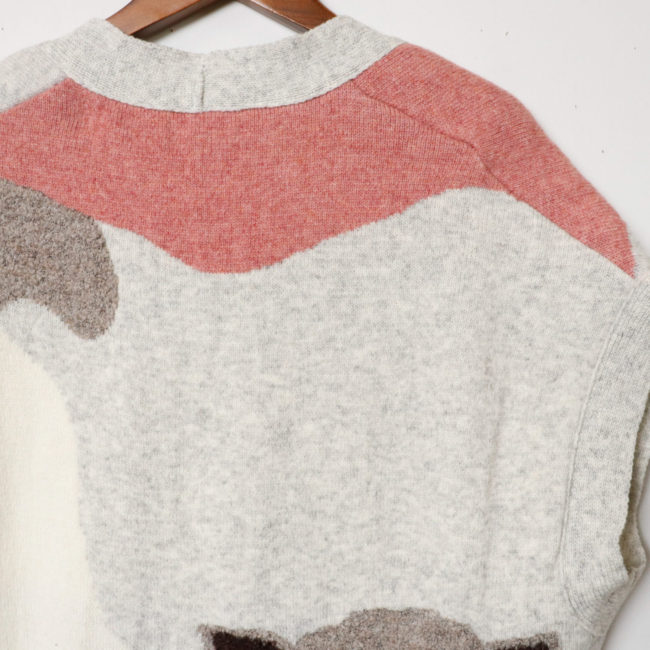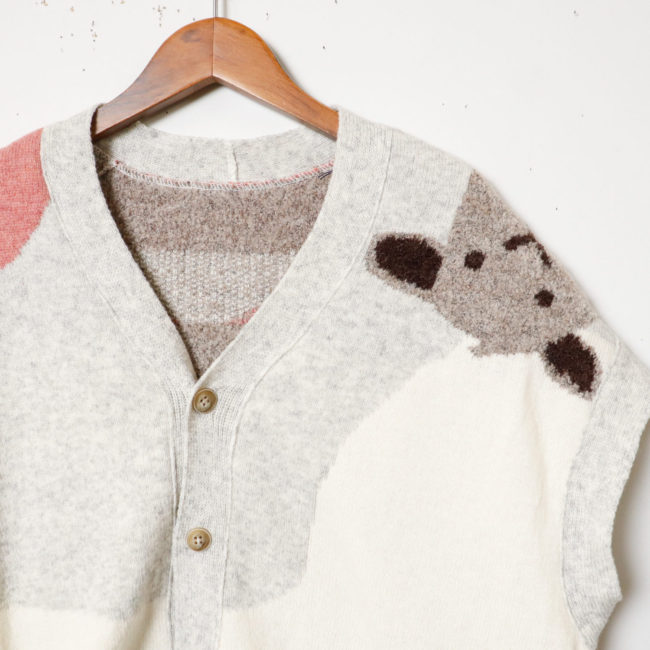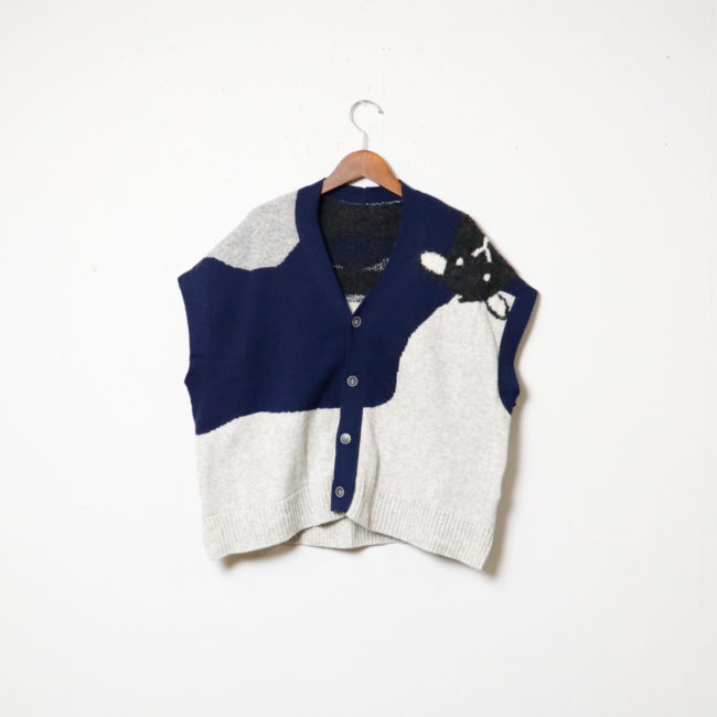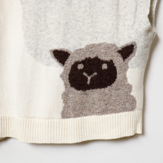 前と後ろからひょっこり覗くひつじが可愛らしいミラノラム羊ジャガードベストです。