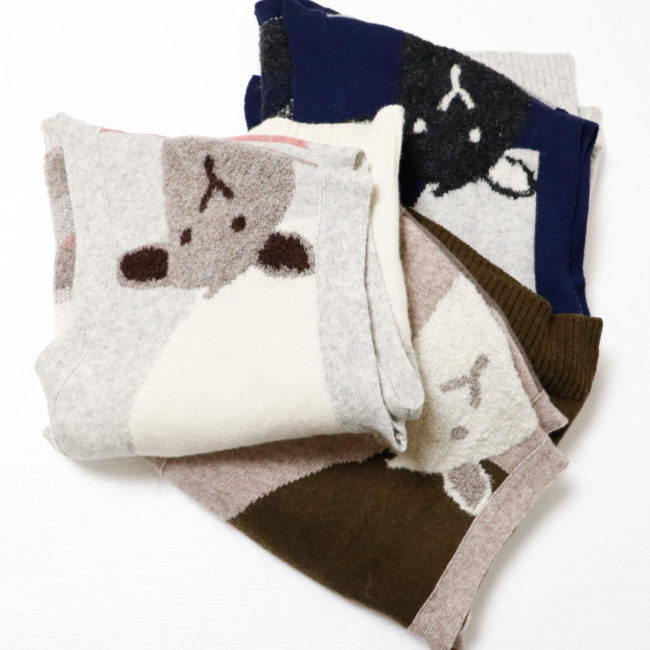 毛質の柔らかなラムウールを使用しつつ、様々な編地に対応できるよう糸芯には伸縮性と強度の高いナイロンを使用、中肉厚で使いやすい7ゲージの天竺編みのニットです。