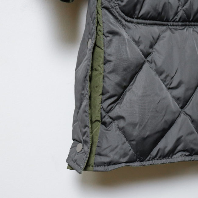 脇にはオリジナルのスナップボタンが付き、スリットが開閉可能。
