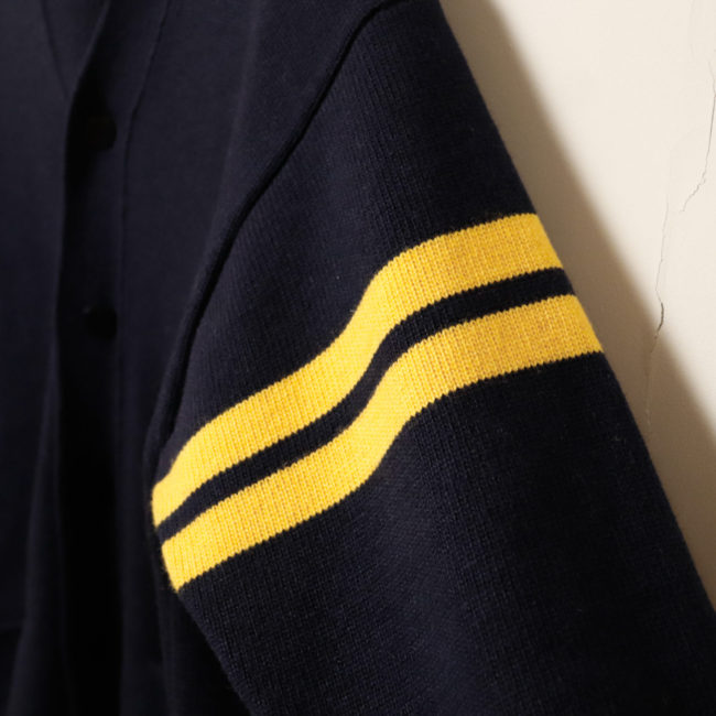 カレッジ風のVネックニットカーディガン。