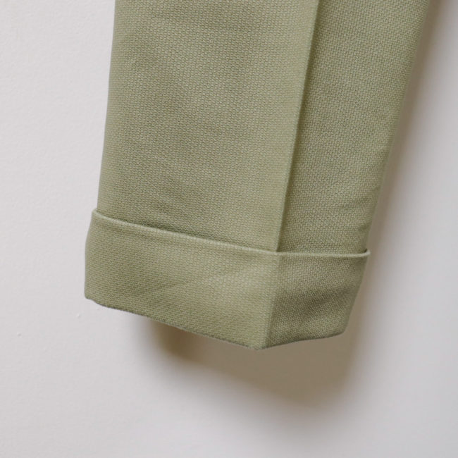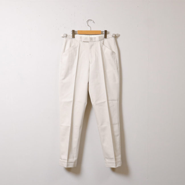 腿周りにはややゆとりを持たせ、テーパードを効かせたシルエットで、どんな体型の人でも楽に綺麗に穿いていただけます。