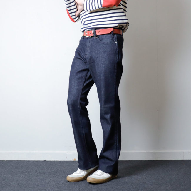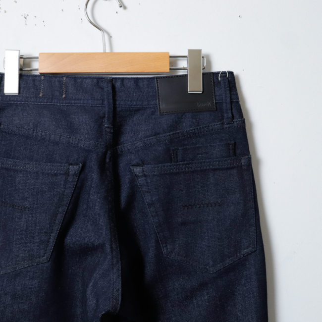 ヒップ部分の厚みを削りつつ、裾が広がりすぎない様なレッグラインにすることで、キレイめでありながら男らしいシルエットを実現しています。