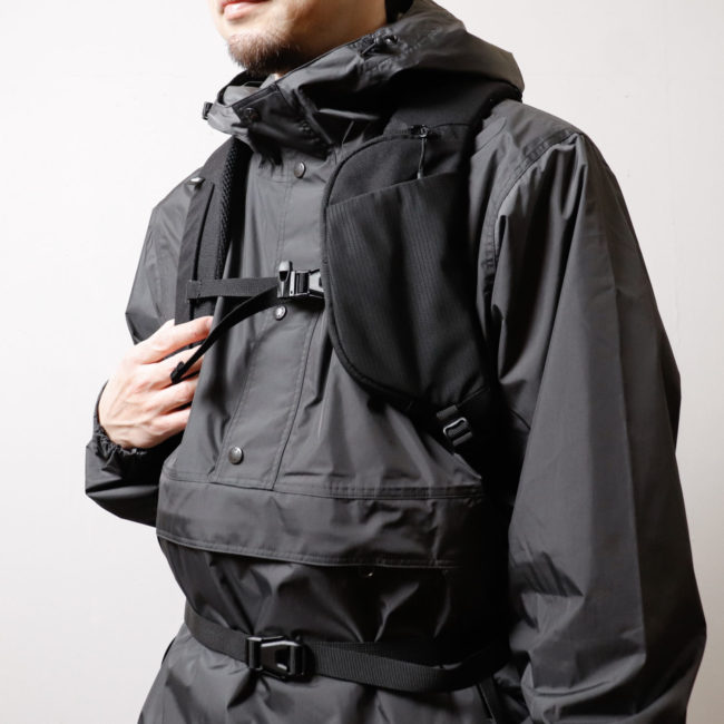 ショルダーハーネスにはスマホ用のポケットも標準搭載。