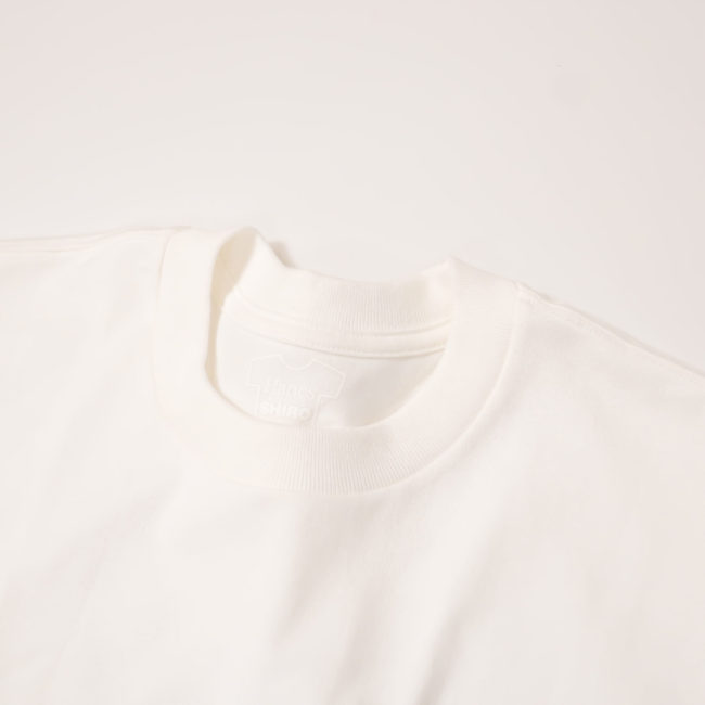 首元にネームデザインを身生地同色でプリントするTAGLESS®(タグレス)仕様。