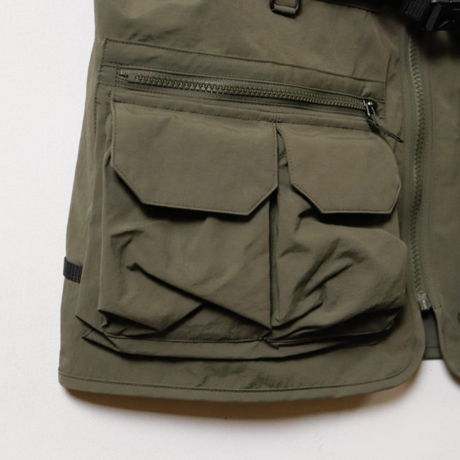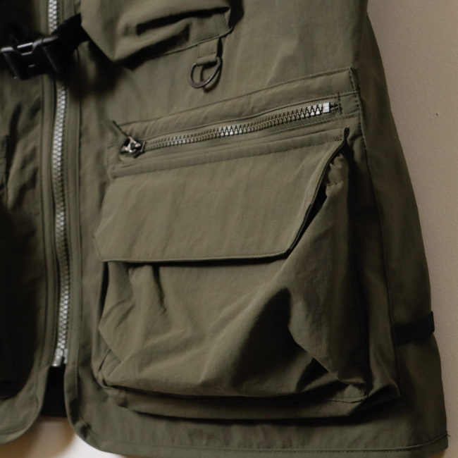 多くのポケットを配備し、アウトドアやキャンプなどのシーンで荷物を持たずに手ぶらで行動できるベスト。
