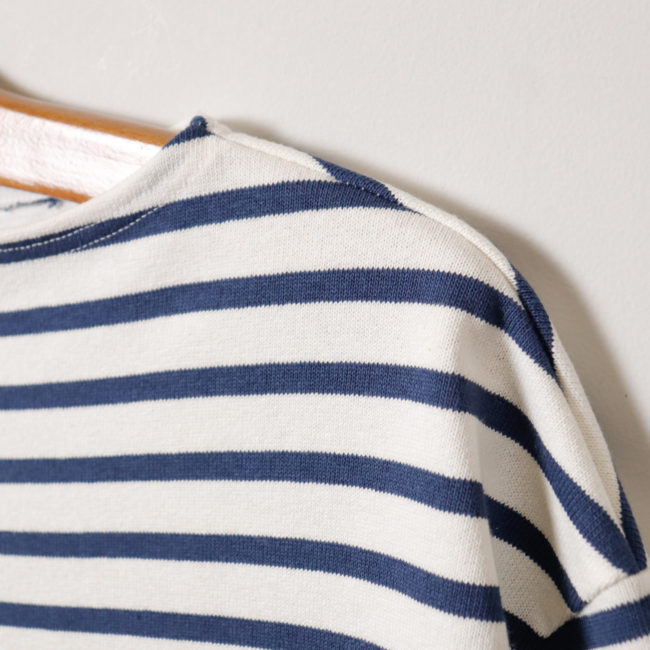 おなじみのボートネックはそのままに、ゆったりと肩を落とした五分袖でリラックス感のあるシルエットに仕上がっています。
