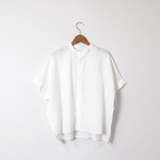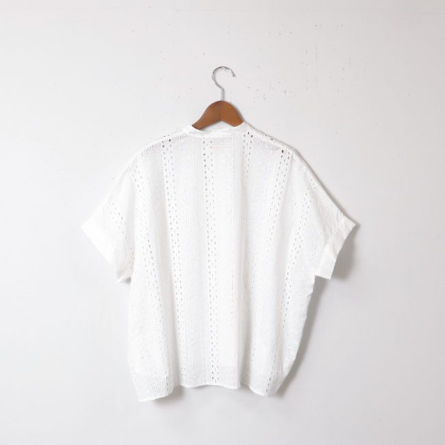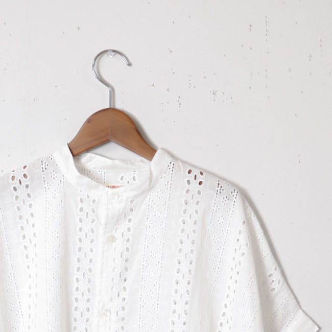 ほどよくハリ感のあるコットン生地に、繊細なレースをあしらった女性らしい一枚。