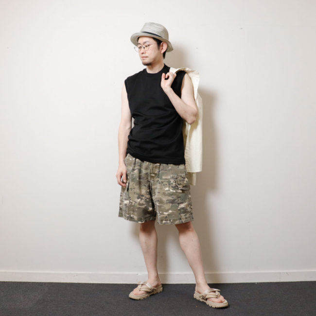 24SSで好評だったCAMO RIP SHORTSをベースに、ウエストにはゴム入りのドローコードにを採用することで イージーなカーゴショーツに仕上がっています。