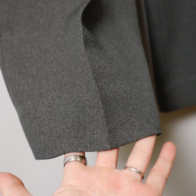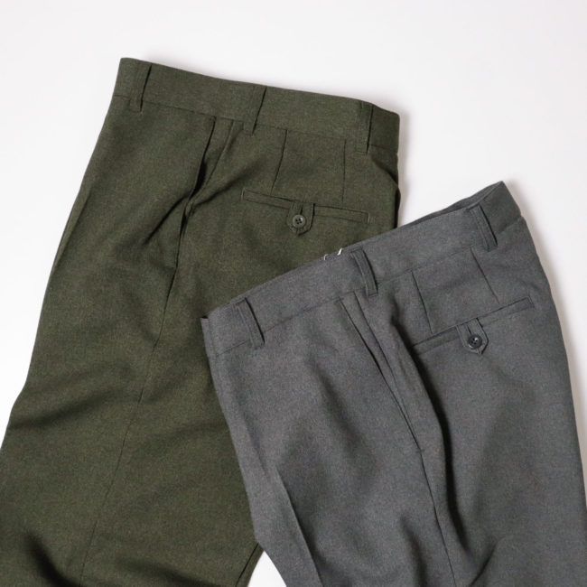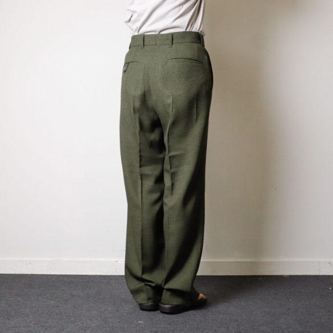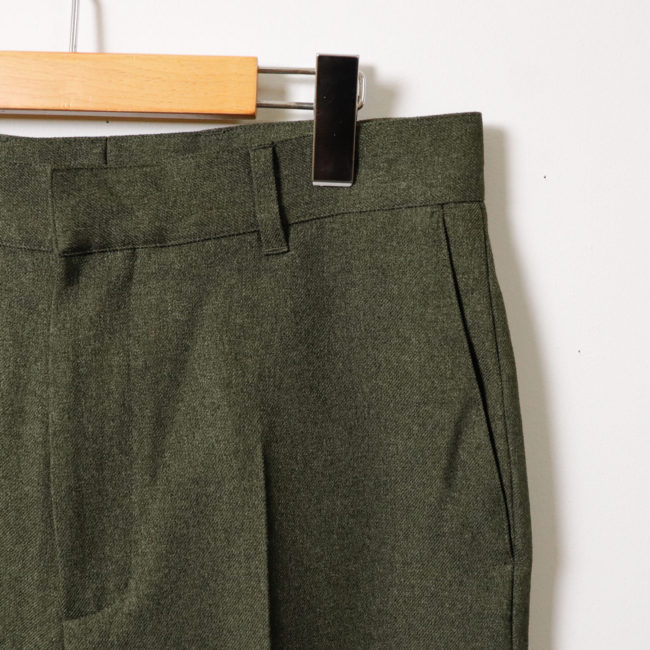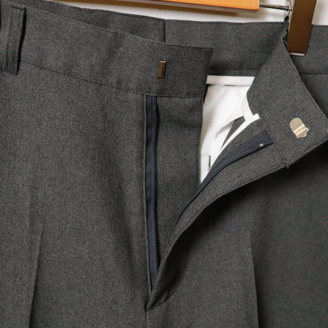 センタープレスが施され、腰回りはすっきりとしたノータック仕立て。