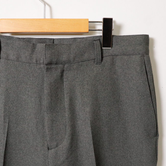 ポリエステル素材のストレッチ生地を使用しており、とろみのある風合いで穿き心地がよく、洗濯にも強く扱いやすいのが特徴です。