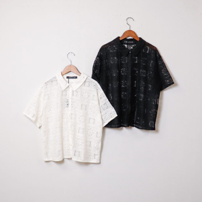 ヴィンテージライクな総レース柄が印象的なハーフスリーブシャツ。