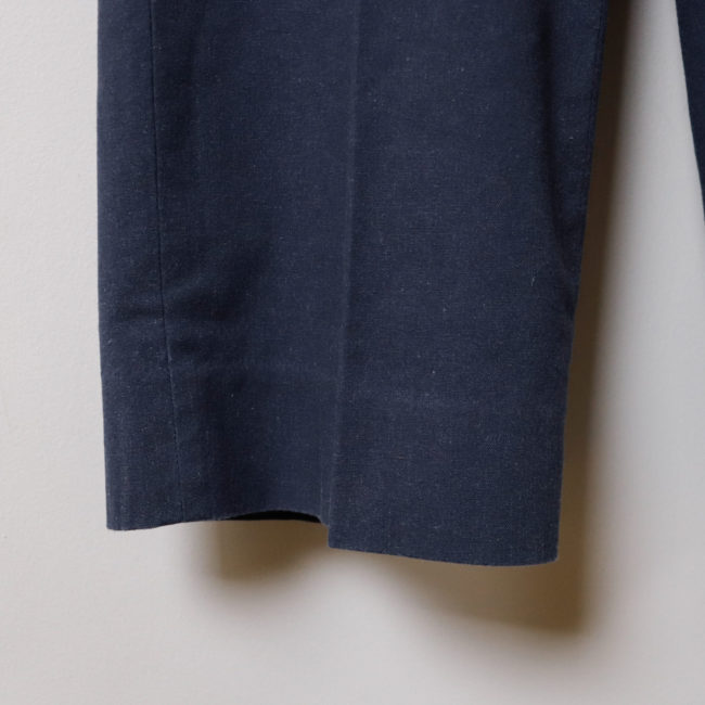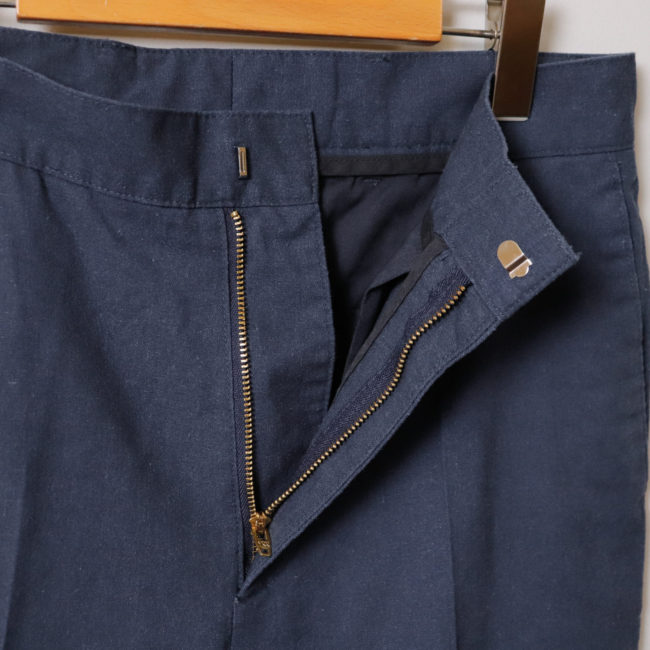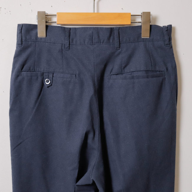 センタープレスが施され、腰回りはすっきりとしたノータック仕立て。