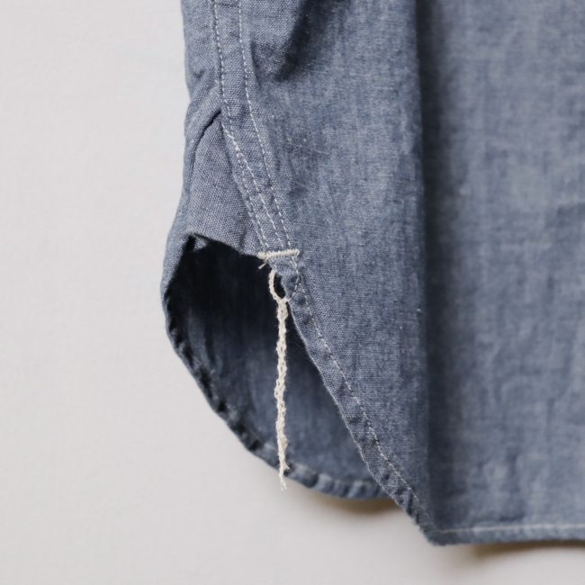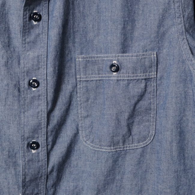 襟型や縫製仕様、付属品など細部にまでこだわり、限りなくヴィンテージのシャンブレーシャツに近づけています。