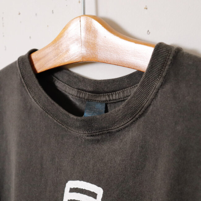 ブランドネームをアメカジ古着の雰囲気に大胆にアレンジした、シンプルながらインパクト大のプリントTシャツ。