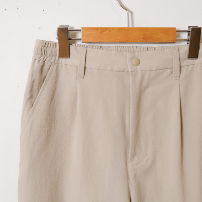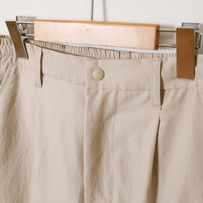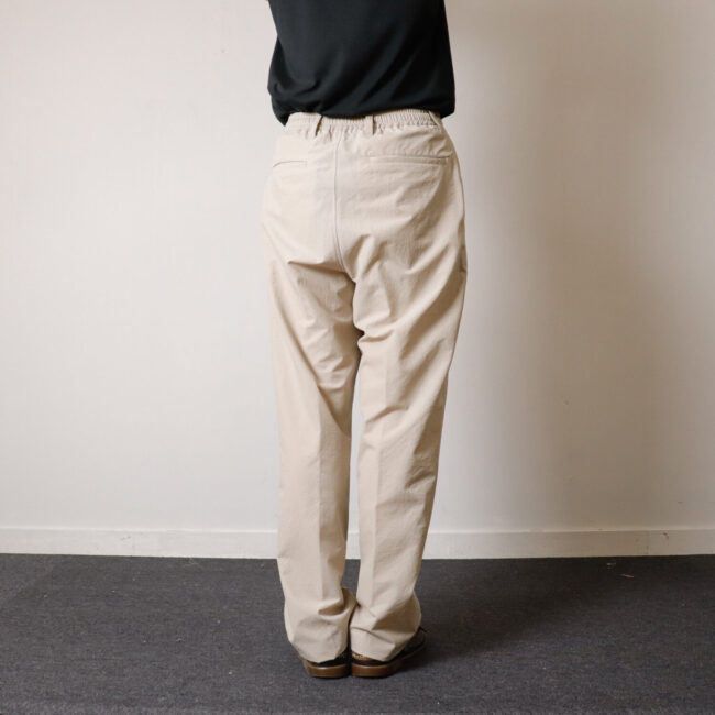 着用時はスラックスのような印象ですが、ウエストの後ろ部分にゴムが入っており履き心地抜群。
