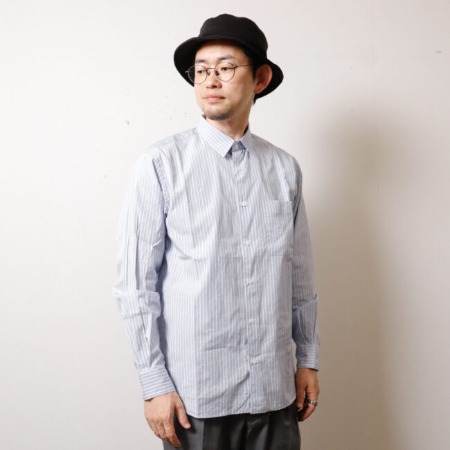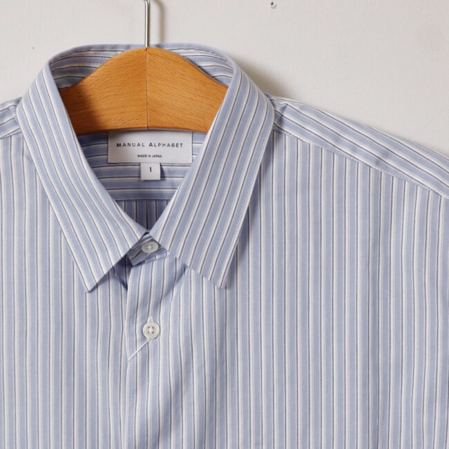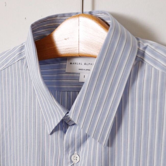 大人のストライプシャツ入荷!【MEN'S】MANUAL ALPHABET[マニュアルアルファベット] BASIC 80/2 BLUE STRIPE RC SHT