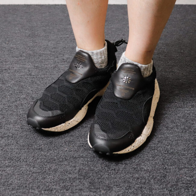 蜂の巣や亀の甲羅など自然界が形づくる安定した構造「ハニカム形状」をモチーフに開発されたアッパーのメッシュ素材が機能的・デザイン的な特徴となっているスリップオンスニーカー。