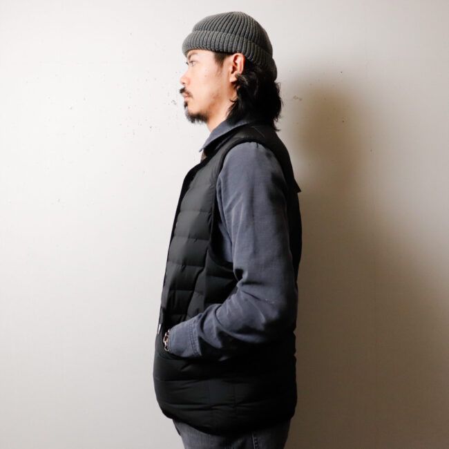 シャツやパーカーと合わせてアウターとしてはもちろん、滑りの良い素材がジャケットやコートの中間着としても合わせやすく、抜群の着回し力と寒い時季の快適性が備わったライトダウンです。カジュアル過ぎない落ち着いた雰囲気が幅の広いコーディネートで活躍してくれます。 シャツやパーカーと合わせてアウターとしてはもちろん、滑りの良い素材がジャケットやコートの中間着としても合わせやすく、抜群の着回し力と寒い時季の快適性が備わったライトダウンベストです。 カジュアル過ぎない落ち着いた雰囲気が幅の広いコーディネートで活躍します。