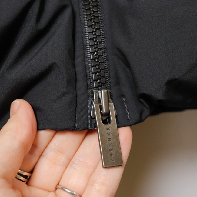 ロフト感のある上質なフレンチダックダウンを充填しており、表地には軽量ながらも耐久性にも優れるポリエステル製ミニリップストップを採用して軽快に仕上げています。