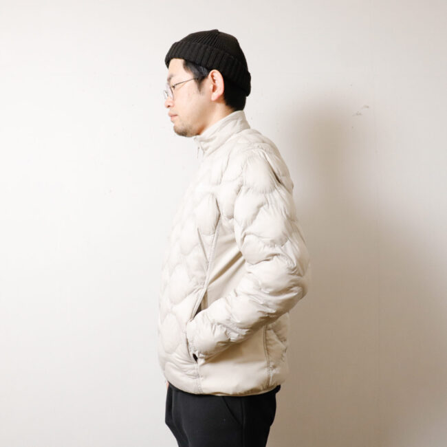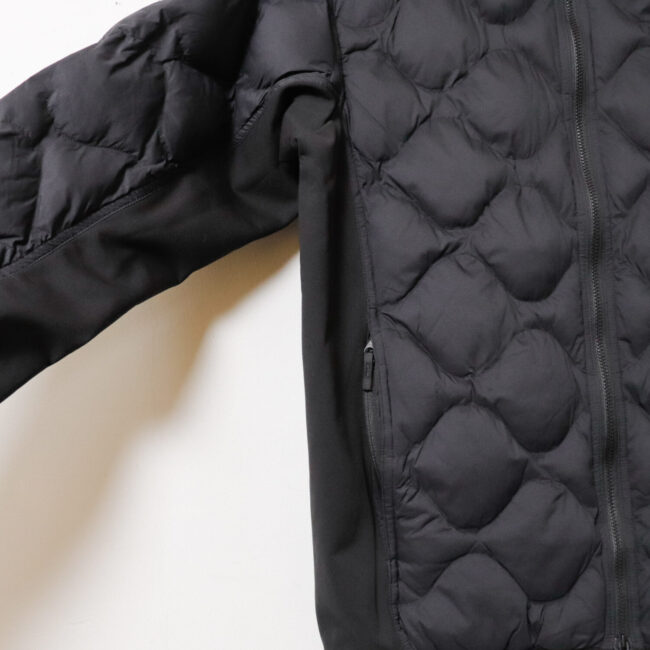 中わたには2種類の形状を組み合わせた「プリマロフトサーモプルーム+」を封入し、高い保温性ながら軽くてやわらかな着心地です。