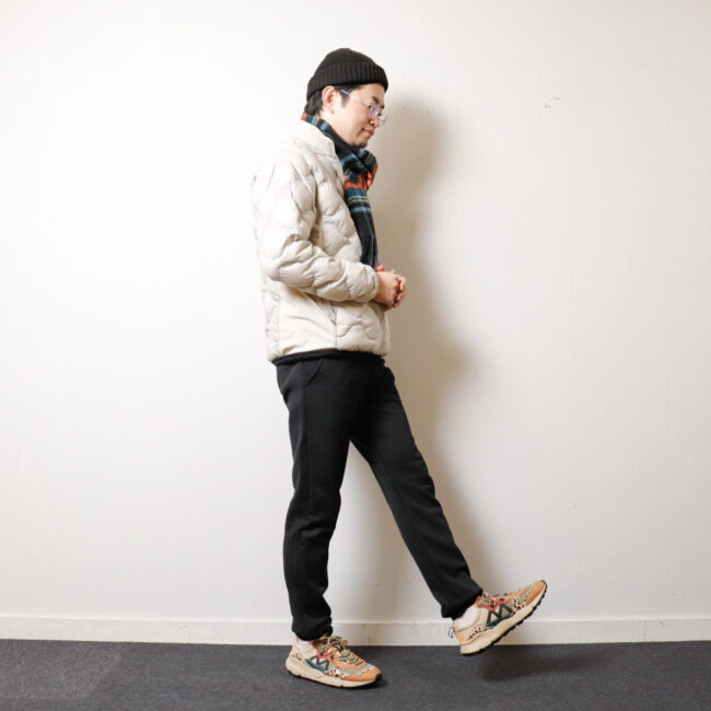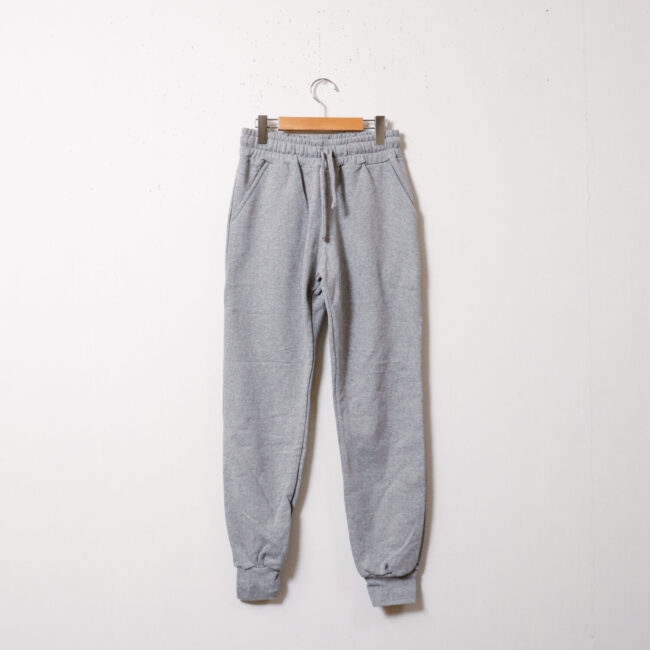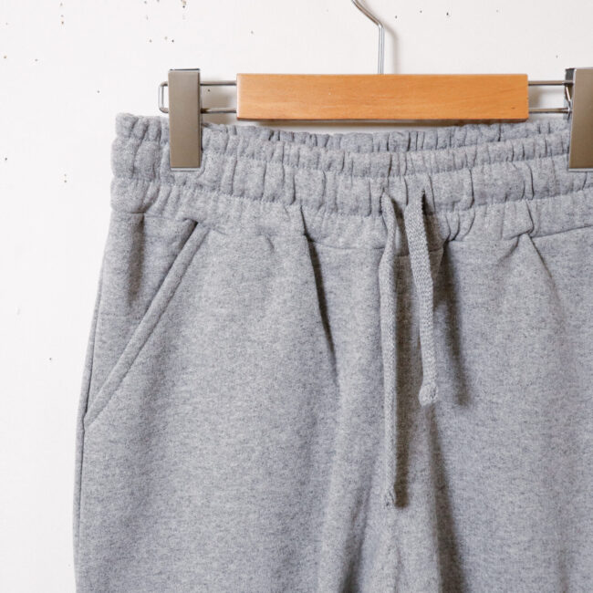 スウェットパンツながら、細身でスッキリとしたキレイめシルエット。