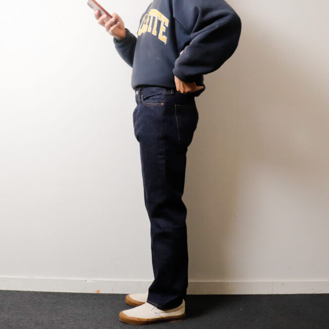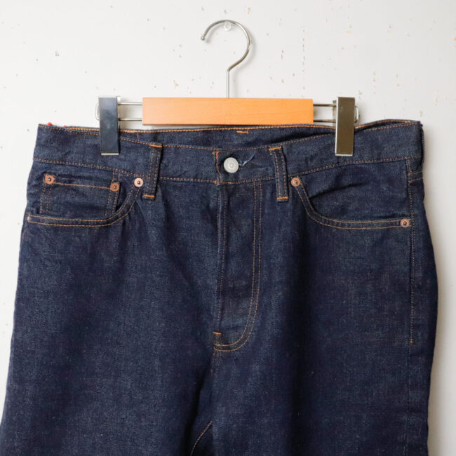 MATERIAL] ・LEVISのヴィンテージデニムを参考にリプロダクト ・耳の付いた14ozのセルビッジデニム生地 ・ヴィンテージのムラを参考にし自然なムラ感を再現 ・打ち込み本数を通常より多めに ・洗いを繰り返してもヘタらないしっかりとした風合い ・毛焼きせず毛羽立ち感を再現 ・スキューをせずネジレを再現
