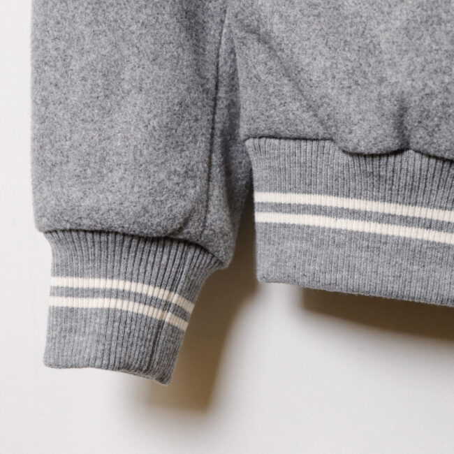 リブ部分はアクリルをメインにした柔らかな仕上がりで、袖口や裾のフィット感を高めつつスポーティなアクセントをプラス。