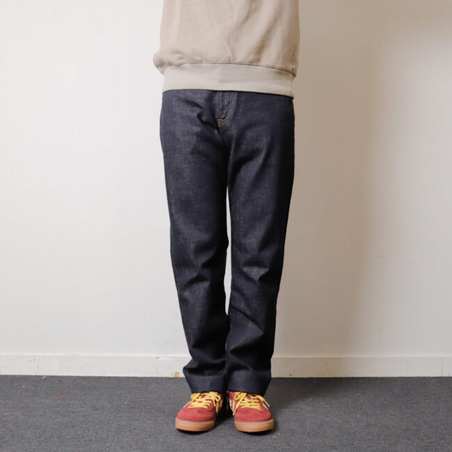 今回のモデルは、深めの股上とやや太めのシルエットのクラシックストレートモデル。