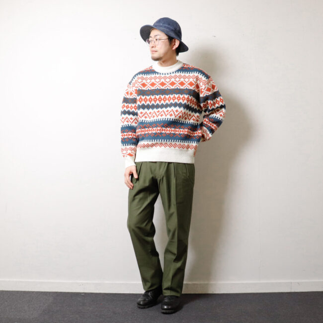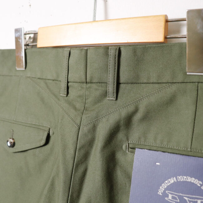 よりミリタリー色が濃く、カーゴパンツの銘品、米軍M-51やM-65パンツのような色味で、オリーブが深く濃い色合いになっています。