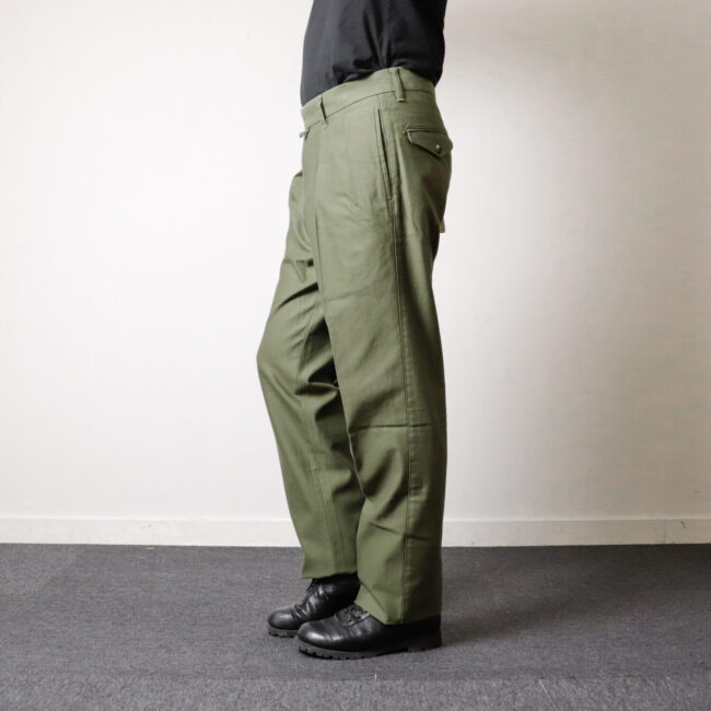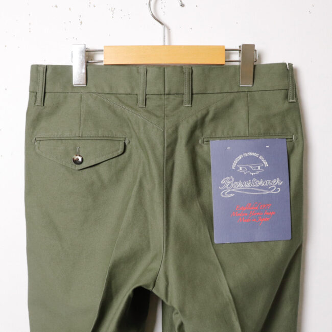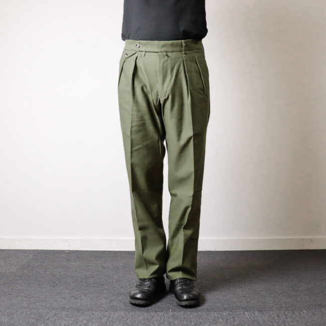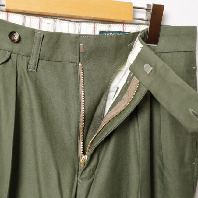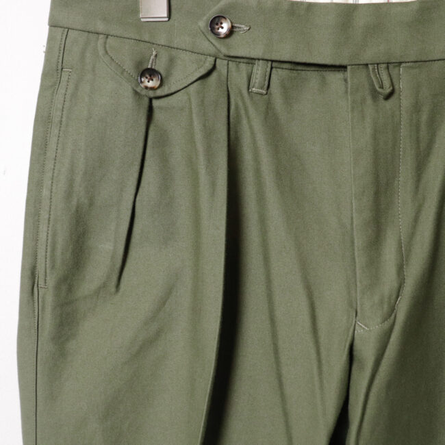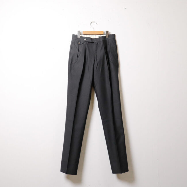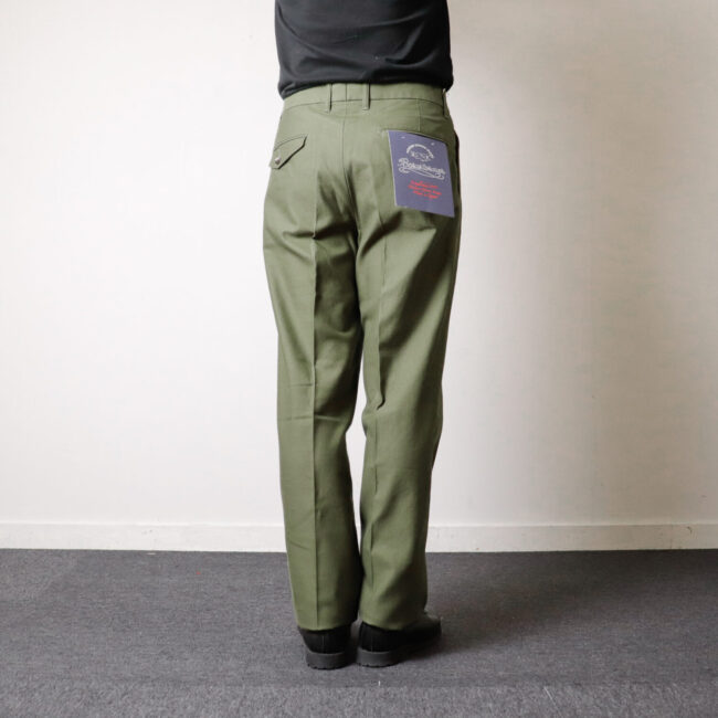 シルエットやディティールは同じくでフロントが2タックでウォッチポケットを配し、程よいテーパード加減のクラシックなデザイン。