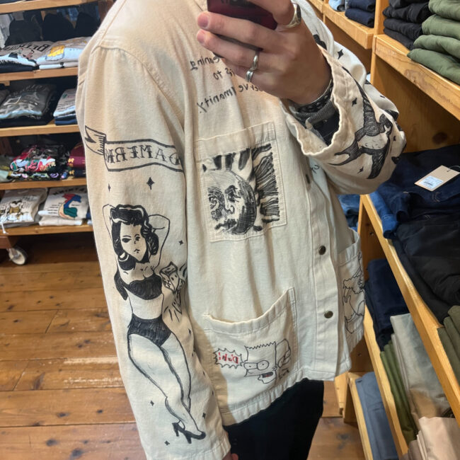 気に入るデザインがなく「自分で描けばいいやん」と気づき安くでカバーオールを仕入れ