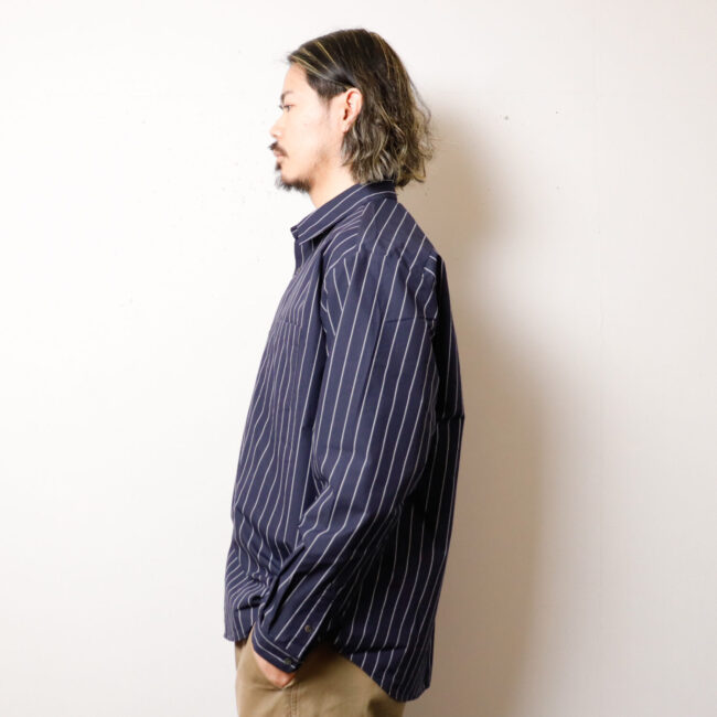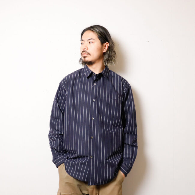 MANUAL ALPHABETより26SSのストライプシャツの登場です。 生地感がサラッとしており、また身幅にゆとりがありますので一枚で様に なる仕様になっております! 春は一枚でザックリ着てもよし、暖かくなればショートパンツと合わせたり多彩な組み合わせが可能になっております! (Men'sモデル:178cm 着用サイズ3)
