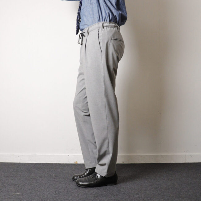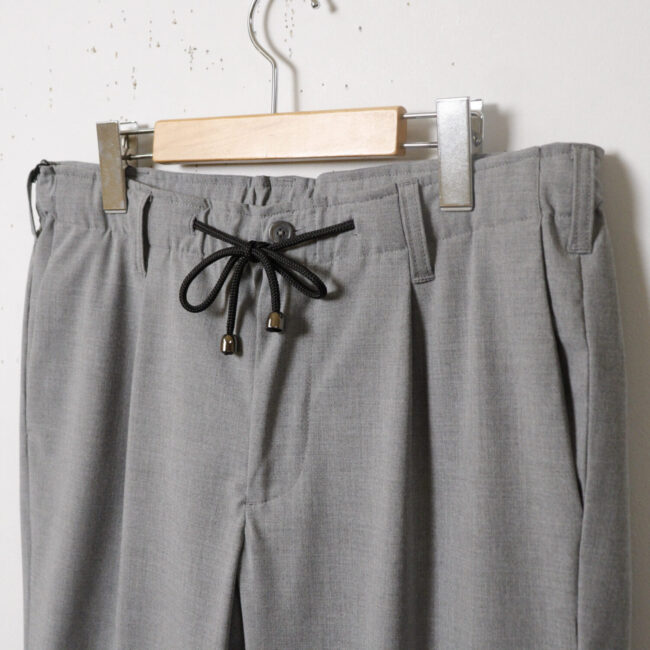 パンツのウエストはドローコードのイージーパンツ仕様、ベルトをしたい場合は紐を内側に持ってくることもできます。