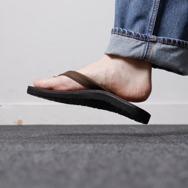 一般的な鼻緒型のサンダルではまず見かけない土踏まず部分のアーチサポートは、通常のレザーサンダルでは生まれにくいクッション性をサポート。